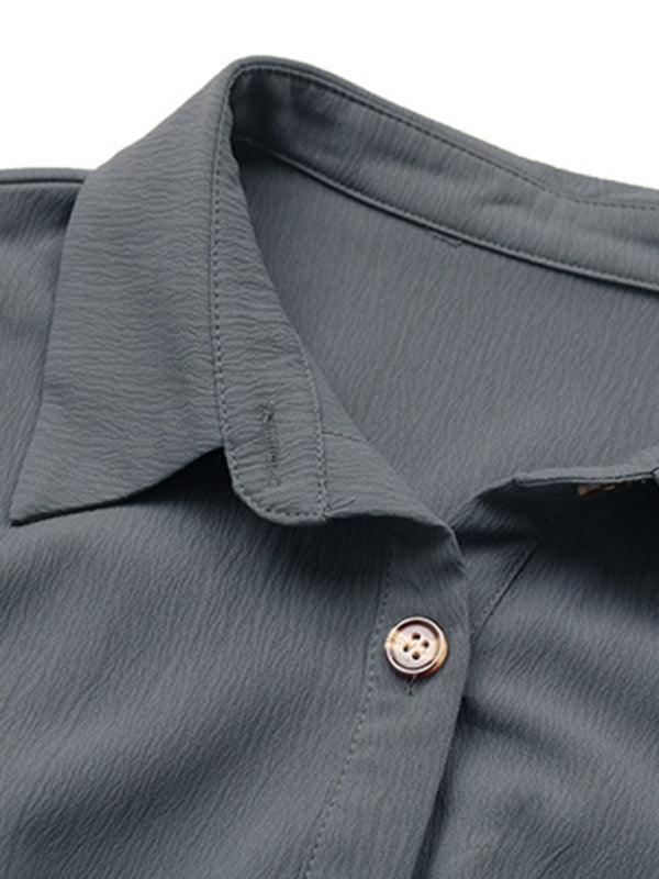 Women's Button Long Sleeve Solid Color Shirt Dress